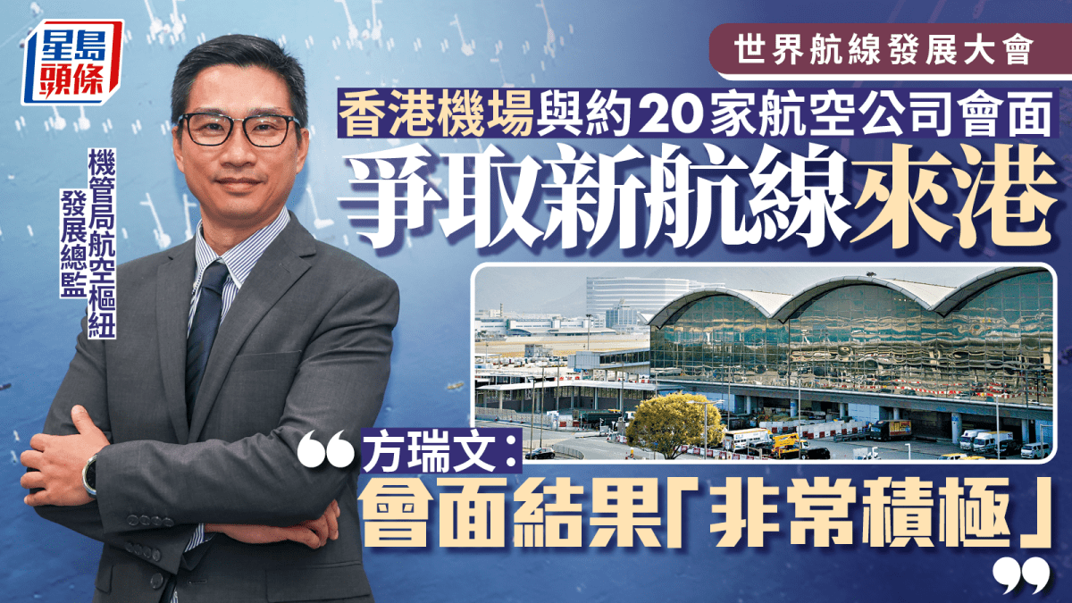 機管局航空樞紐發展總監方瑞文表示,世界航線發展大會匯聚了全球的機場及航空公司,商討新航線事宜,是行業內重要會議。機管局兩年前向主辦爭取該會議在香港舉辦。他表示,香港機場在3日會議中,安排了與約20家航空公司會面,爭取開闢新航線來港,他表示會面結果「非常積極」。