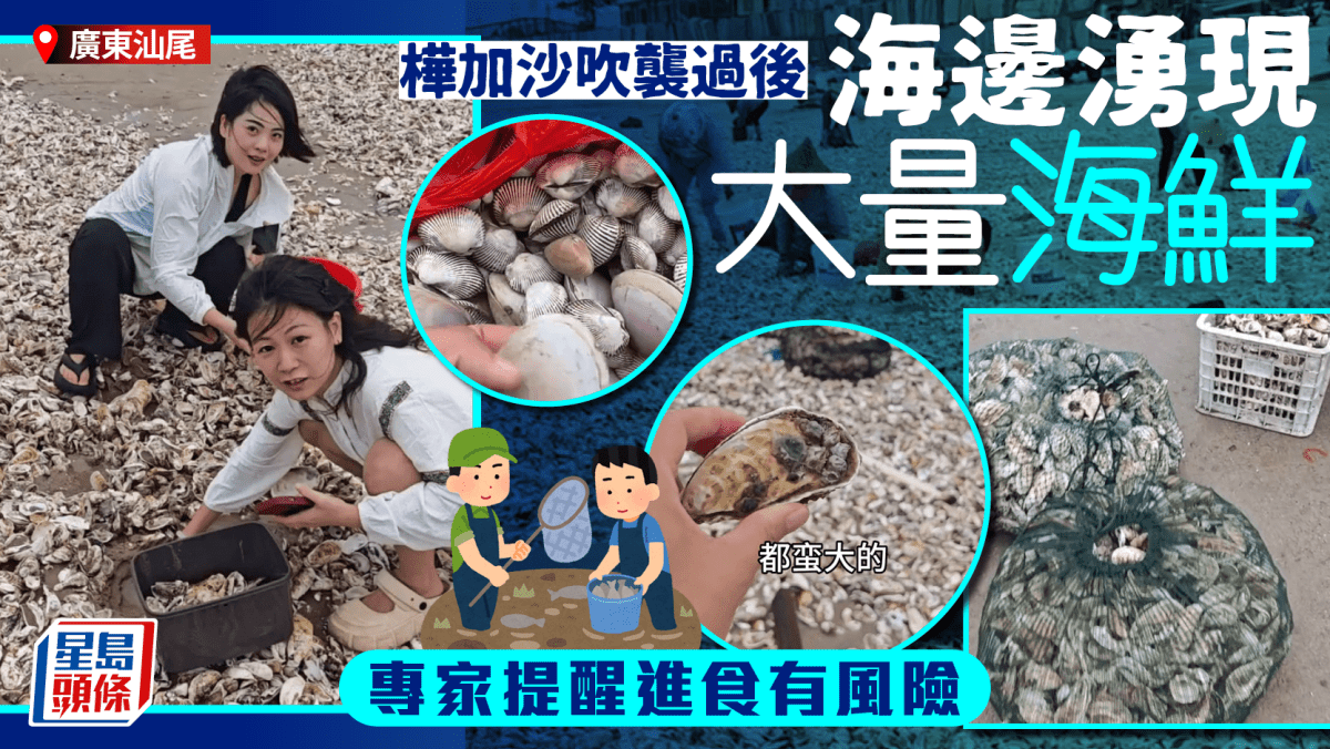 有當地市民指兩小時撿上百斤(約50公斤)海產,稱有颱風就能撿到,生蠔蛤蜊(花甲)都有。另有市民稱生蠔扇貝隨手撿,都是活的。
