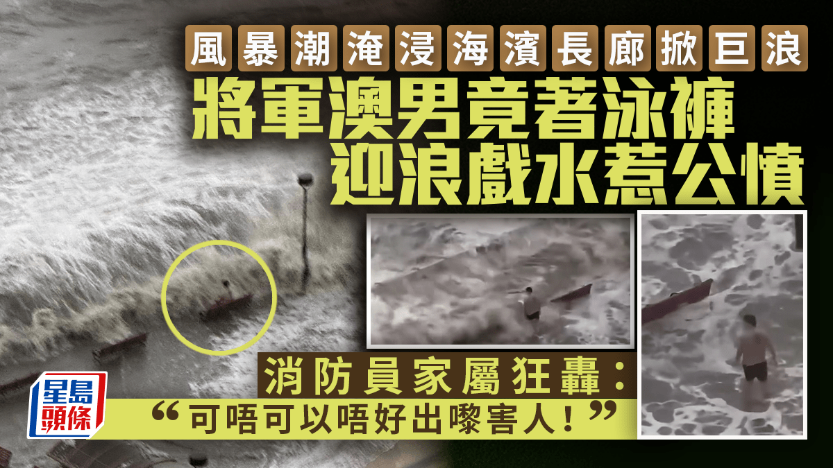 颱風樺加沙|風暴潮淹浸海濱長廊掀巨浪 將軍澳男著泳褲迎浪戲水惹公憤 消防員家屬狂轟:唔好出嚟害人!↓↓↓↓