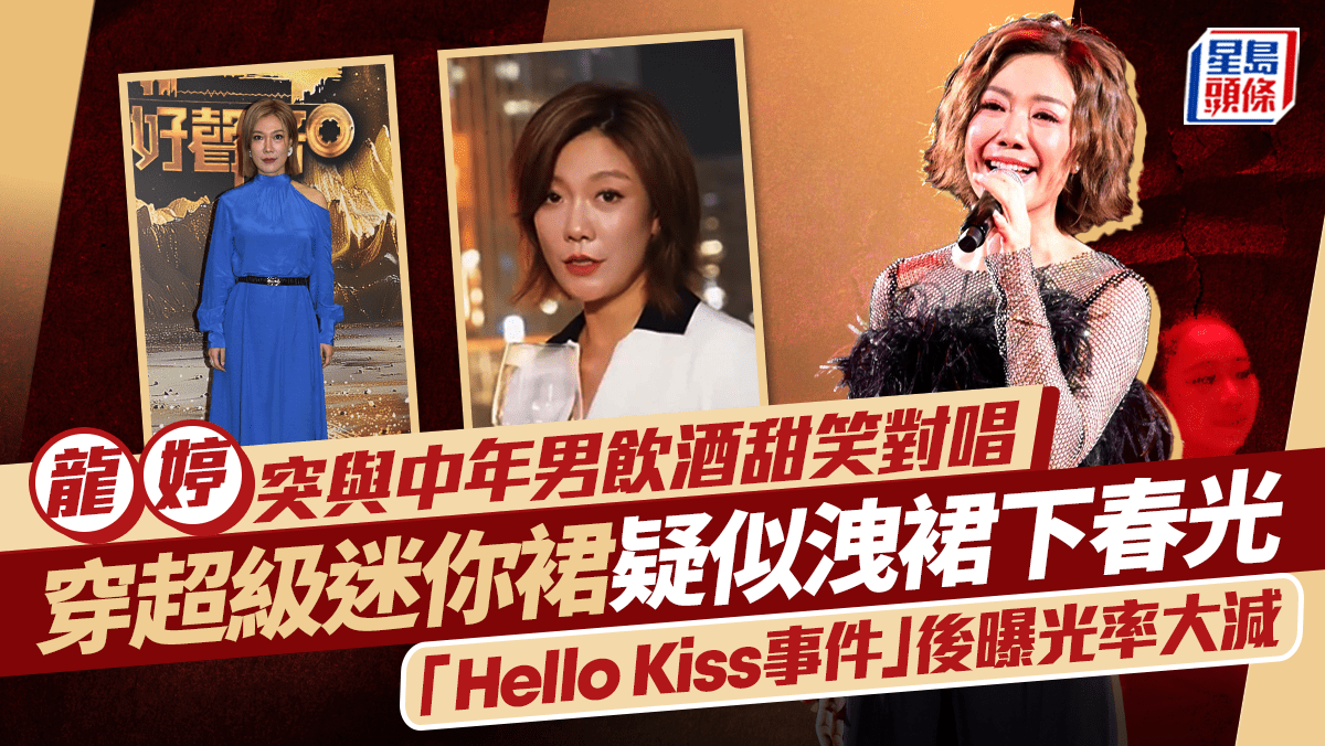 現年44歲、《中年好聲音》人氣參賽者龍婷,當年曾奪得第四名兼「觀眾最愛好聲音」2獎項,但她最令人留下印象的,肯定是去年被被《東周刊》拍得與已婚演唱會製作人丘亞葵有親密舉動,丘亞葵事後回應被拍到疑似接吻的畫面,形容是「朋友式嘅Hello Kiss」。龍婷之後隨即停工一個月迵冷河,但之後人氣始終無法承接緋聞前的勇態。近日再有龍婷面對中年男士嘴角含春、更疑似走光的片段流出,非常震撼。