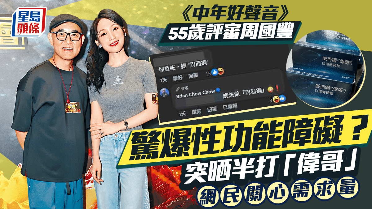 TVB節目《中年好聲音》55歲評審、DJ周國豐一向形象專業,但在社交平台上亦不時展現其幽默一面。近日,他在facebook上分享了一件趣事,表示收到朋友寄來的「厚禮」,竟是多盒外形酷似「偉哥」的產品,引來大批網民「贈興」,關心他的「需要」,非常搞笑!