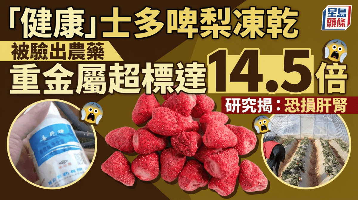 「健康零食」士多啤梨凍乾被驗出20種農藥 重金屬超標達14.5倍 研究揭恐損肝腎