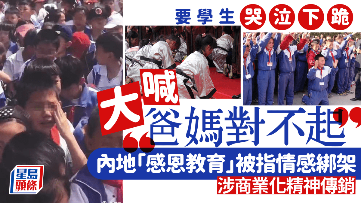 內地部份學校與教育機構向學生推行感恩教育,被批是形式主義。網圖