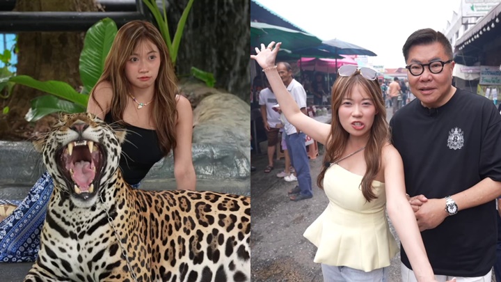 「波波」黃婧靈搵命搏同花豹合照 遭長頸鹿圍舔:以為我係紅蘿蔔