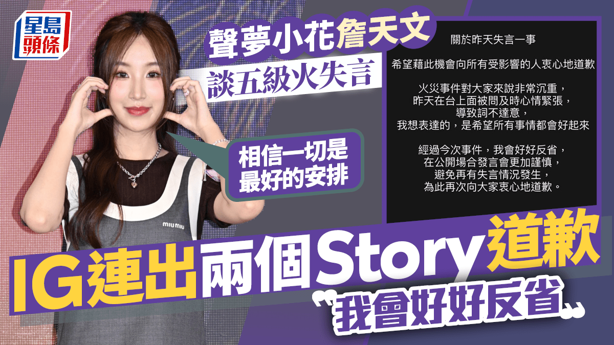 「聲夢」小花詹天文稱宏福苑大火是「最好安排」惹禍 公開致歉認詞不達意:會好好反省