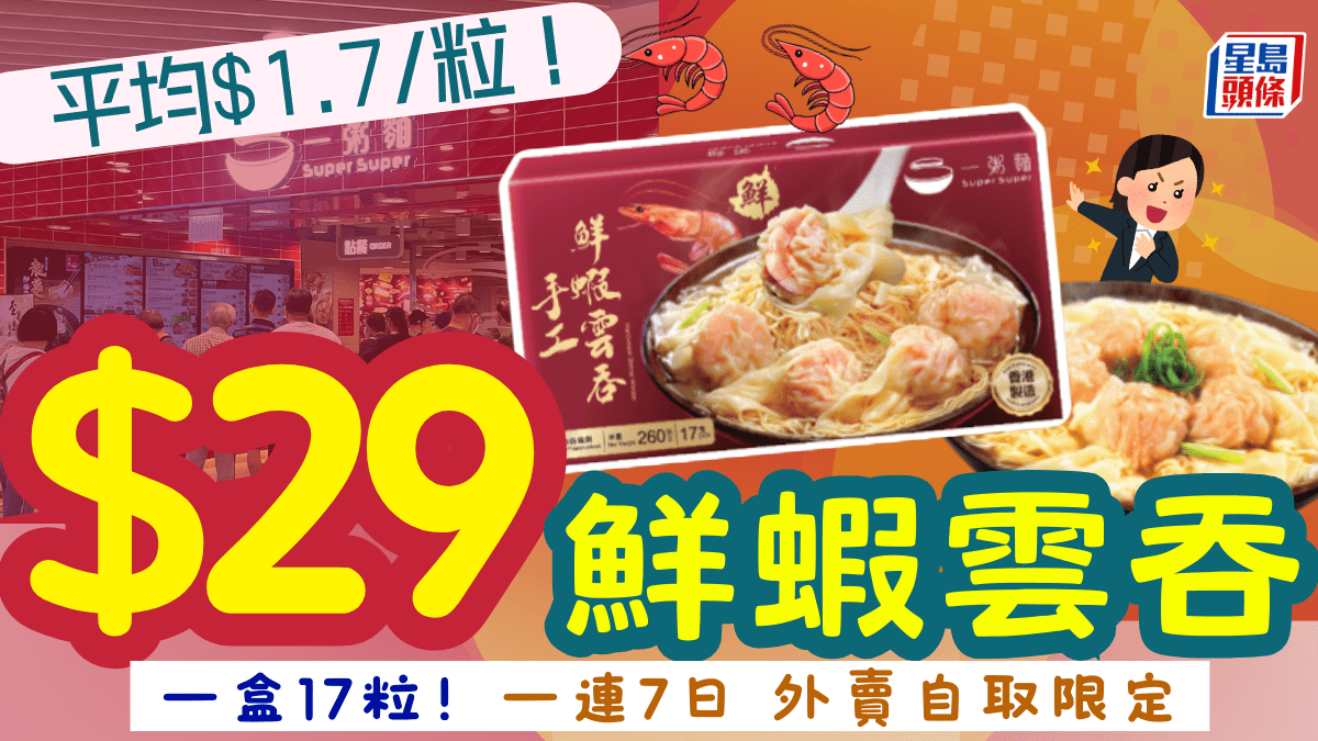 一粥麵限時優惠!$29入手足料鮮蝦雲吞 一盒17粒手工製作