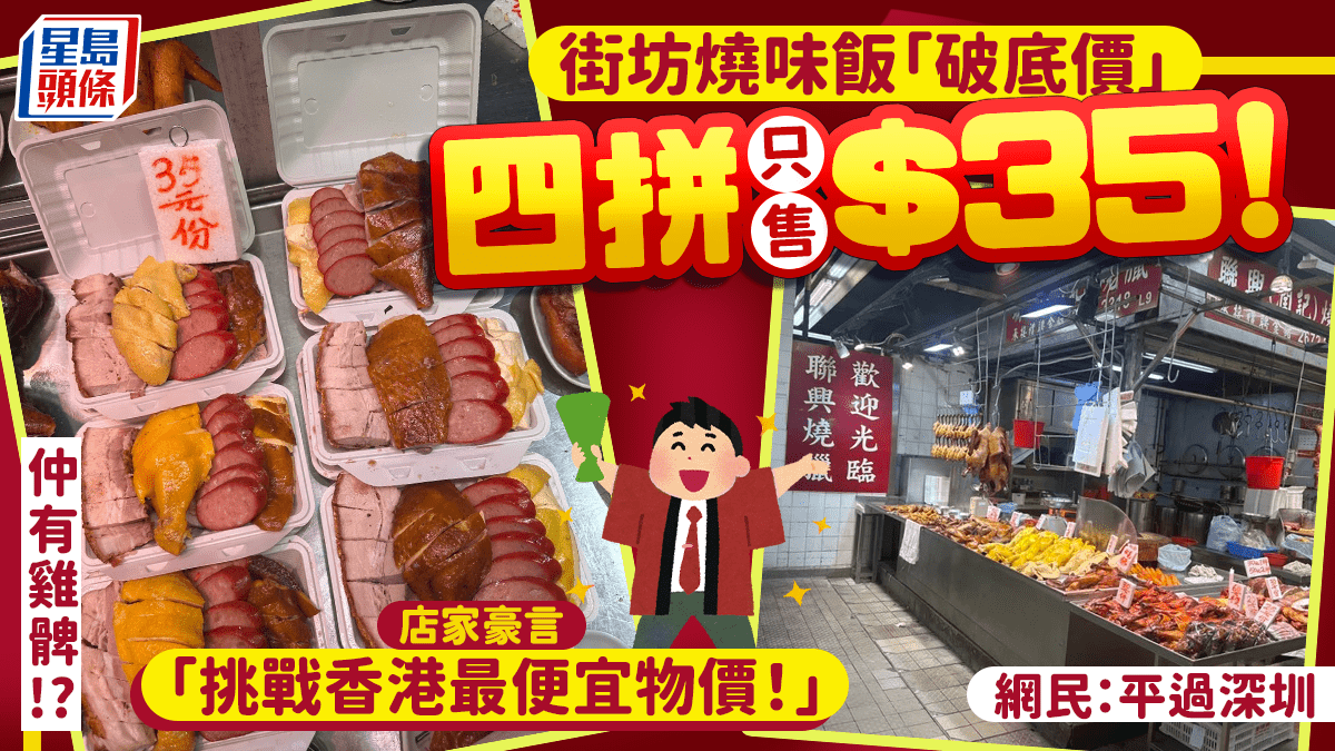 上水平價燒味飯四拼只售$35!店家豪言「挑戰香港最便宜物價!」網民:平過深圳