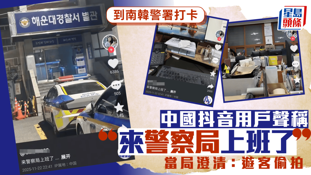 中國抖音用戶打卡聲稱去南韓警署「上班」 當局澄清:遊客偷拍