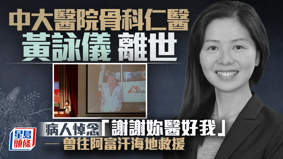 中大醫院骨科仁醫黃詠儀離世 病人悼念「謝謝妳醫好我」曾往阿富汗海地救援