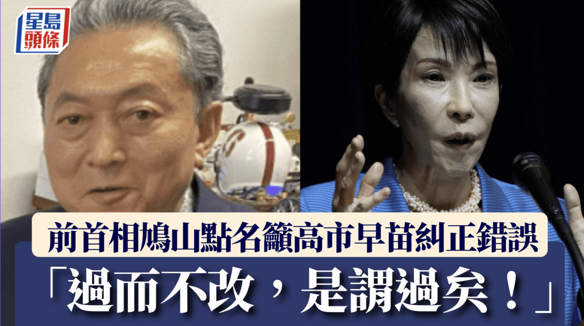 中日惡化|前首相鳩山引《論語》籲高市早苗糾正錯誤:過則勿憚改