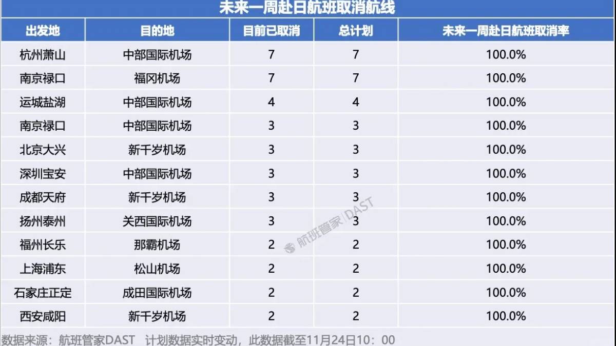 中日關係惡化︱ 12條赴日航線取消所有航班 包括大阪