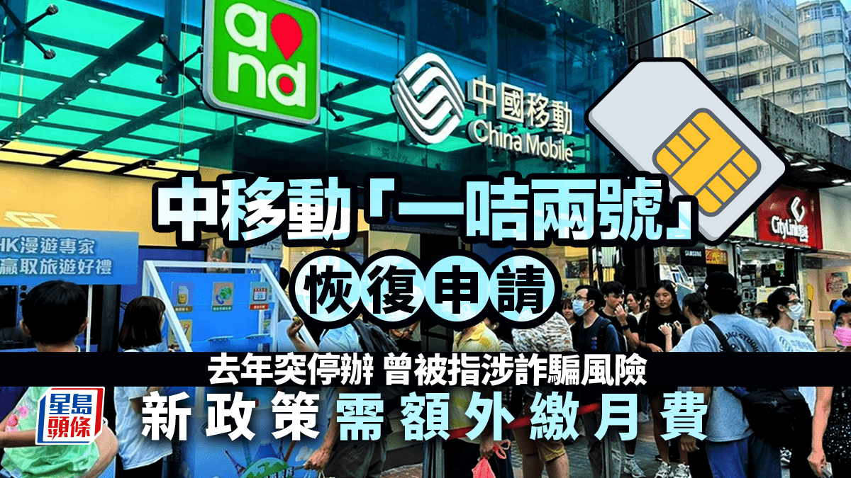 中移動「一咭兩號」恢復申請 去年突停辦 曾被指涉詐騙風險 新政策需額外繳月費