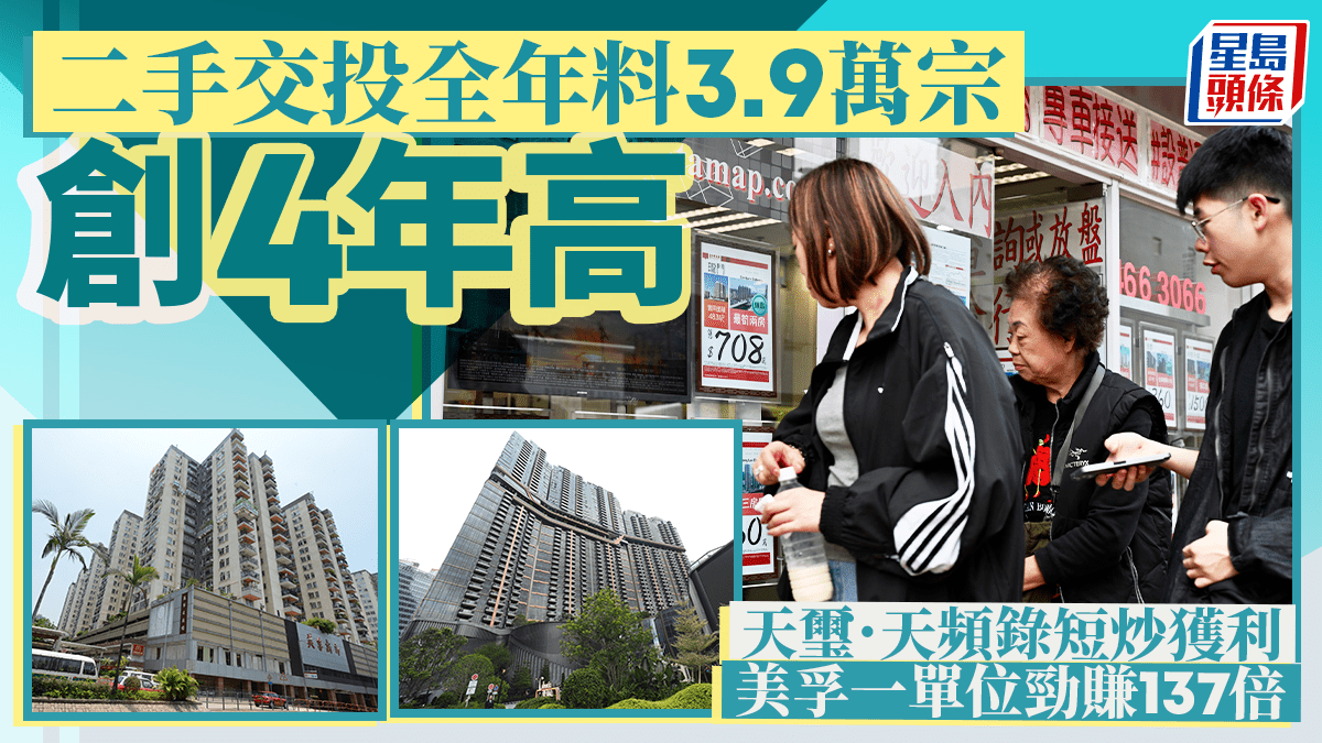 二手交投全年料3.9萬宗創4年高 天璽.天頻錄短炒獲利 美孚一單位勁賺137倍
