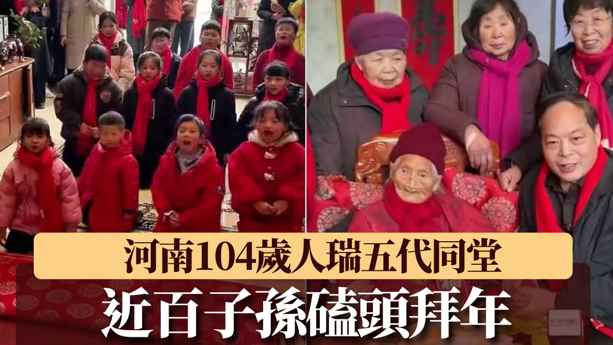 五代同堂|河南104歲人瑞近百子孫磕頭拜年 場面溫馨感人