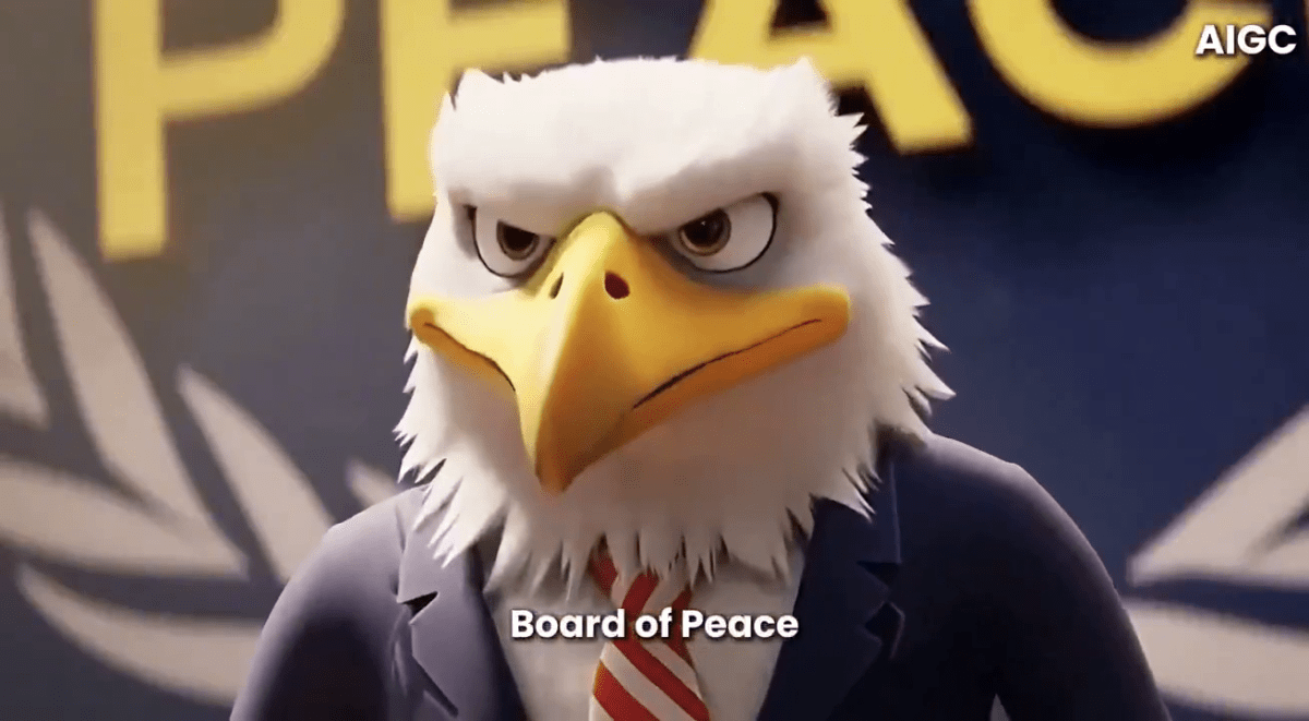 新華社報道,該社這兩天在海外播發了一段英文創意影音,只有14秒,卻意味深長。 影音開頭,象徵美國的白頭鷹宣布:「歡迎來到剛剛成立的『和平委員會(Board of Peace)』。」 相關新聞:伊朗局勢|巴林美國空軍基地受襲 伊朗揚言向通過霍爾木茲海峽船隻開火|持續更新 這時,背後標牌上的「Board」突然掉下,露出「Bored」一詞。「Board of Peace」就變成了「Bored of Pe