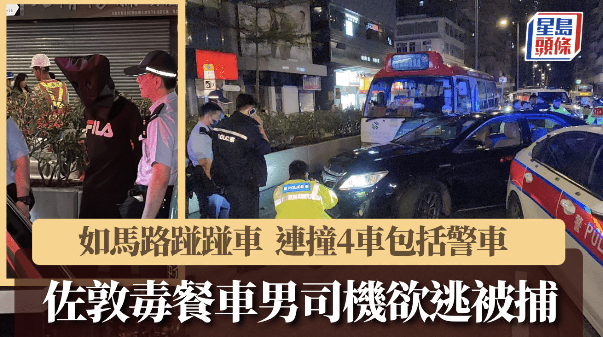 佐敦毒餐車連撞4車包括警車 男司機落車欲逃被捕 男警腳傷送院
