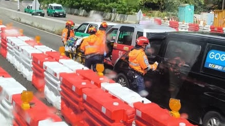 今日(13日)上午11時27分,元朗朗天路往天水圍方向發生3車相撞意外,涉及兩部的士及一部「GOGO VAN」客貨車。其中紅的被夾在綠的與客貨車之間,司機稍後獲救,報稱頸痛,救護員將他送院治理。