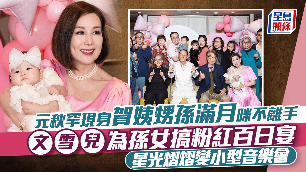 元秋罕現身賀姨甥孫滿月咪不離手 文雪兒為孫女搞粉紅百日宴 星光熠熠變小型音樂會