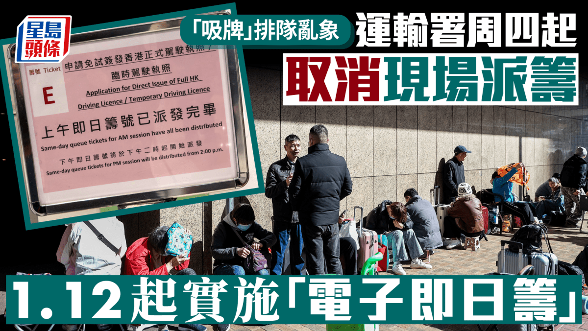 免試簽駕照|運輸署 : 1.8開始取消現場派籌 1.12起實施「電子即日籌」日派300個