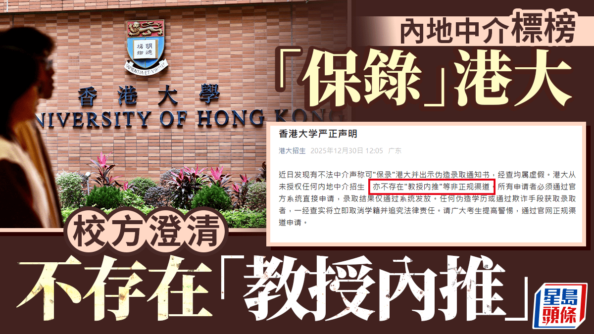 內地中介標榜「保錄」港大 校方:偽造錄取通知書 不存在「教授內推」