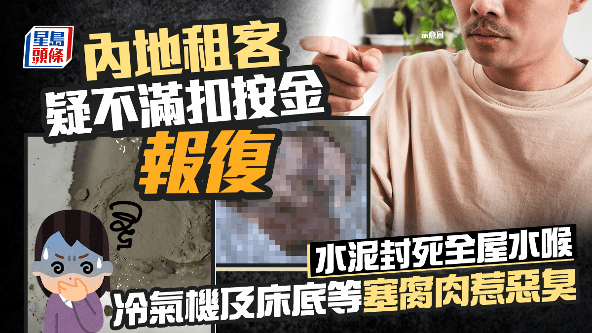 內地租客疑不滿扣按金報復 水泥封死全屋水喉 冷氣機及床底等塞腐肉惹惡臭