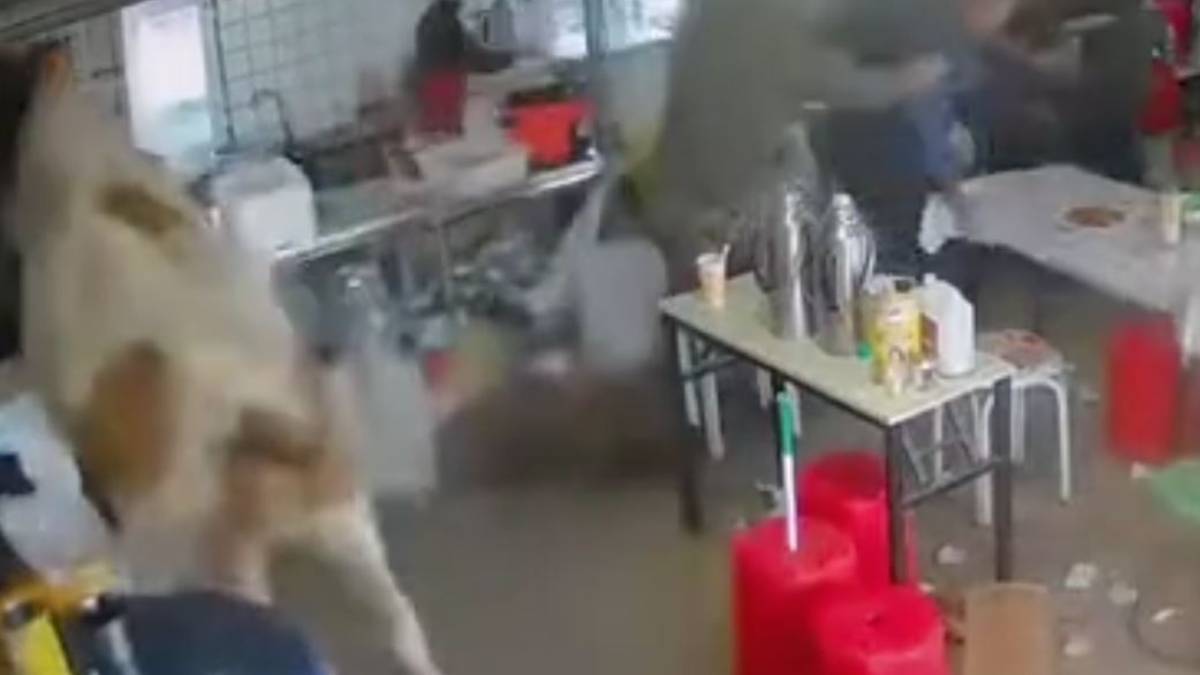 內蒙古狂牛衝入餐館亂跳 嚇得食客速逃︱有片