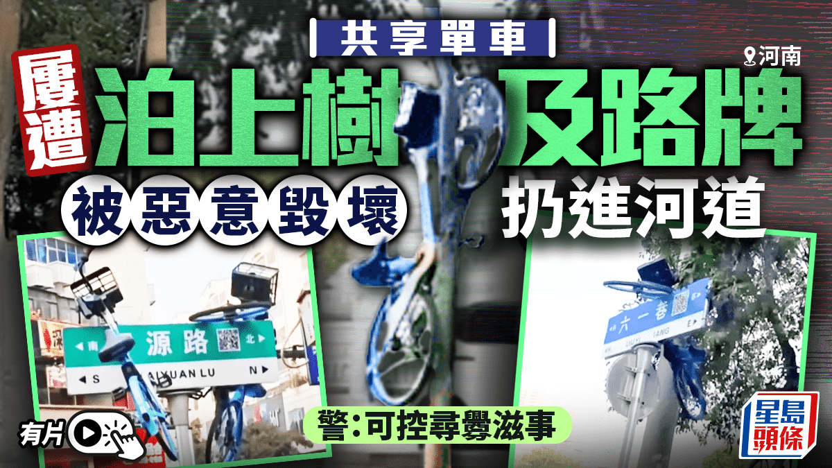 共享單車︱河南平頂山現「樹上泊車」 警:可控尋釁滋事|有片