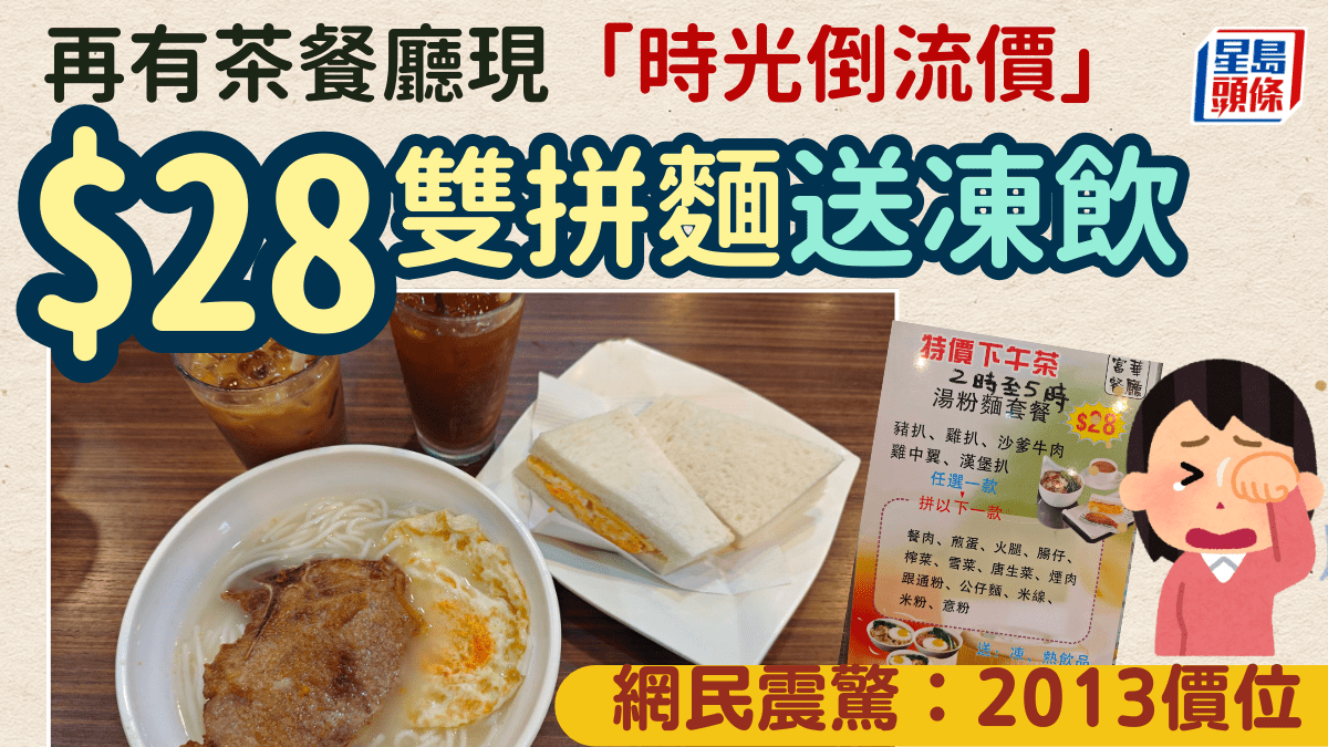 再有茶餐廳現「時光倒流價」!$28豬扒雙拼麵兼送凍飲 網民震驚:2013價位
