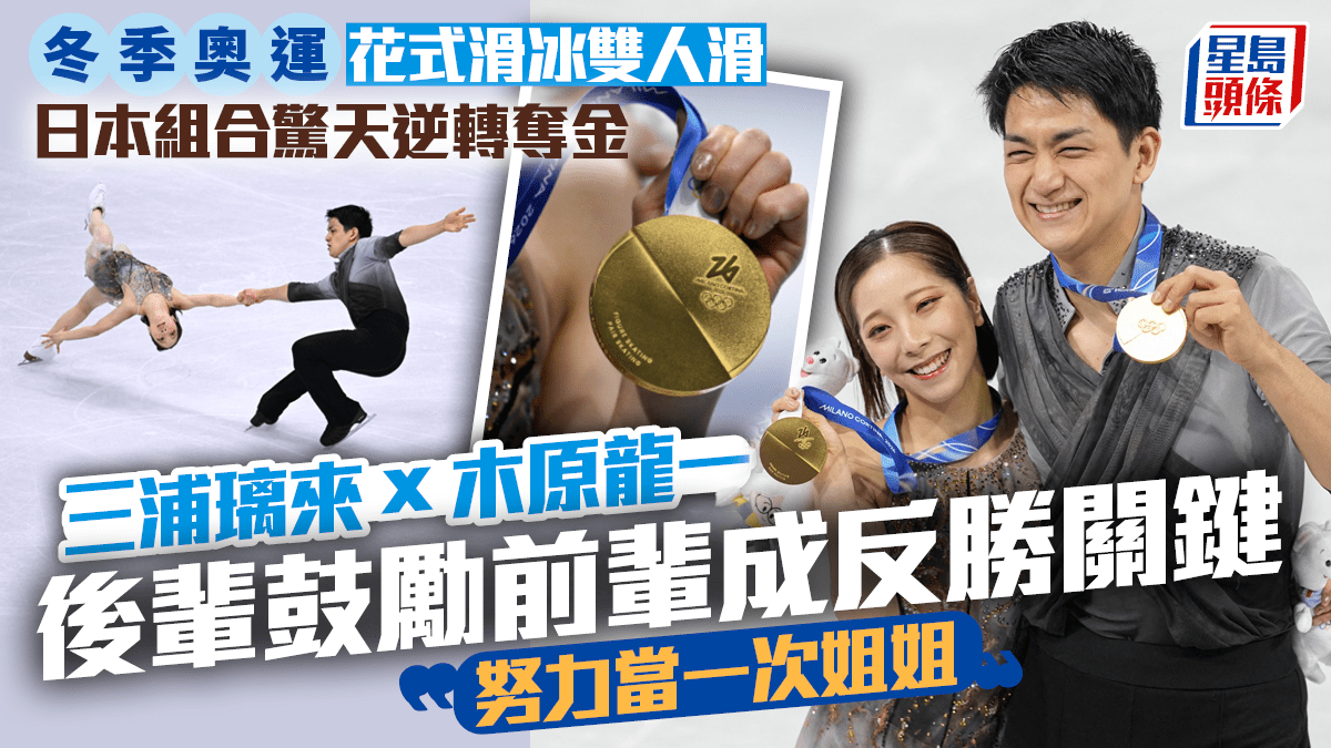 冬季奧運|日本三浦璃來、木原龍一創造歷史 花式滑冰雙人滑逆轉奪金