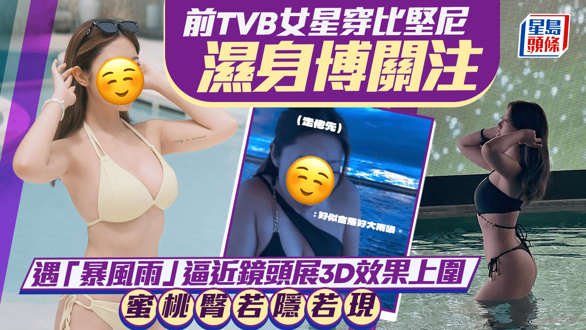 前TVB女星穿比堅尼濕身博關注 遇「暴風雨」逼近鏡頭展3D效果上圍 蜜桃臀若隱若現