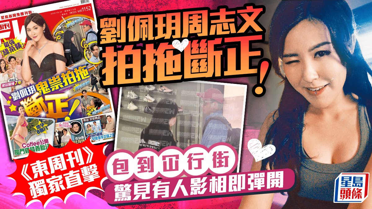 日前下午,在尖沙咀的一個商場,《東周刊》獨家捕獲劉佩玥與周志文鬼祟拍拖。當日,兩人孖公仔逛商場「血拼」,當日,兩人十分低調,女的打扮普通,穿上風褸兼戴上口罩,而男的則戴太陽眼鏡及鴨嘴帽。現場所見,劉佩玥不時留意四周環境,走到多人的地方,兩人更刻意行到離行離迾。之後,周志文發現有人舉起手機影相,即時示意女友盡快離開,接着他們更分開走,男的朝港鐵方面,而女的則前往停車場。劉佩玥登上紅色電動車座駕後馬上踩油離開商場。