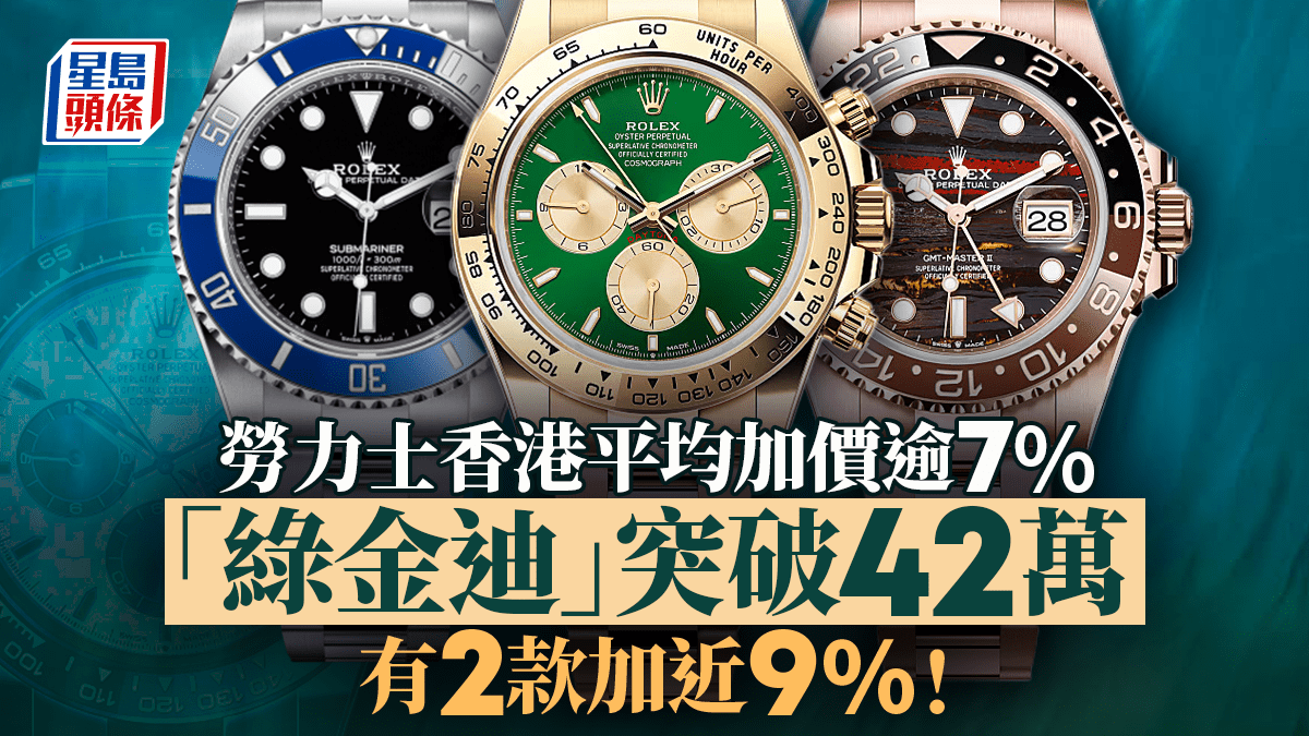 勞力士Rolex|勞力士香港平均加價逾7%「綠金迪」Daytona突破42萬 有2款加近9%