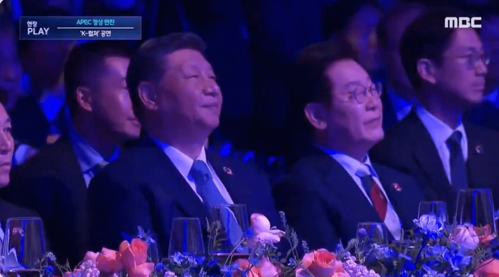 當晚的壓軸表演由BIGBANG成員權志龍登台,他以APEC 2025韓國宣傳大使身份亮相,接連演唱《POWER》、《Home Sweet Home》及《DRAMA》等多首熱門歌曲,勁歌熱舞掀起高潮。鏡頭拍到台下氣氛輕鬆愉快,作為重要嘉賓的國家主席習近平亦露出笑容,專注觀看演出;加拿大總理卡尼(Mark Carney)更化身「迷弟」,拿出手機不停拍攝。