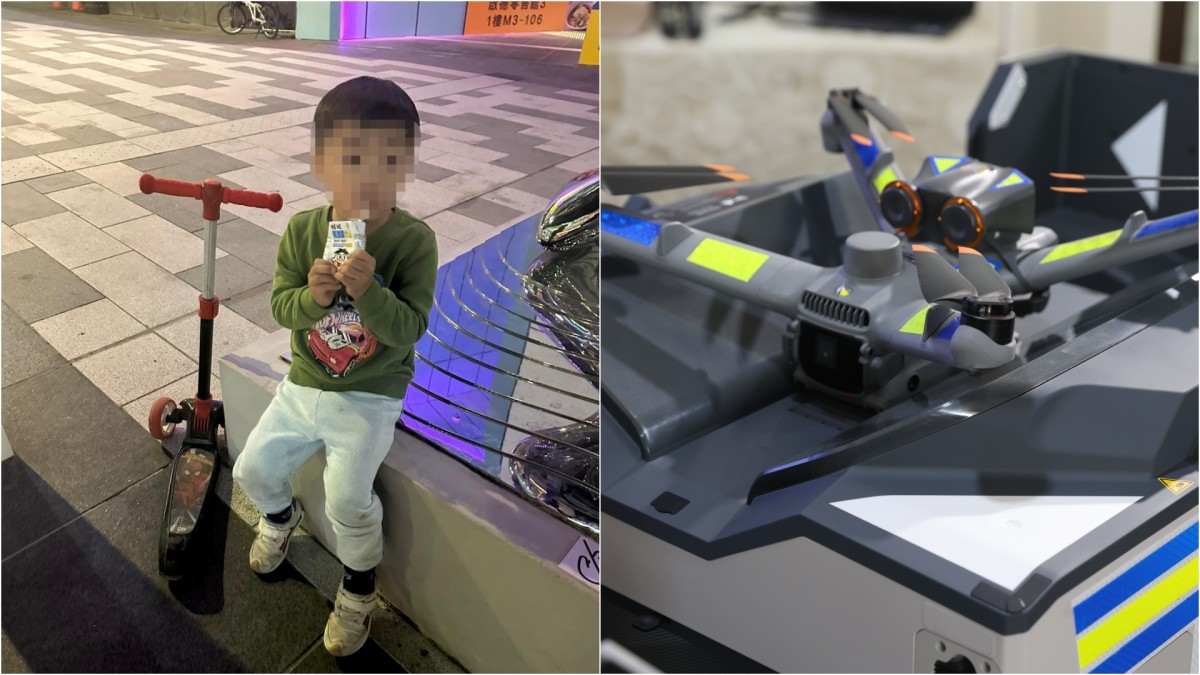 啟德3歲童踩滑板車與家人失散 警方巡邏無人機助重圓