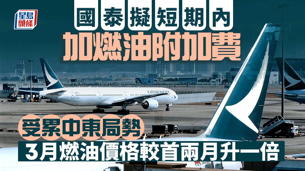 國泰擬短期內加燃油附加費 受累中東局勢 3月燃油價格較首兩月升一倍