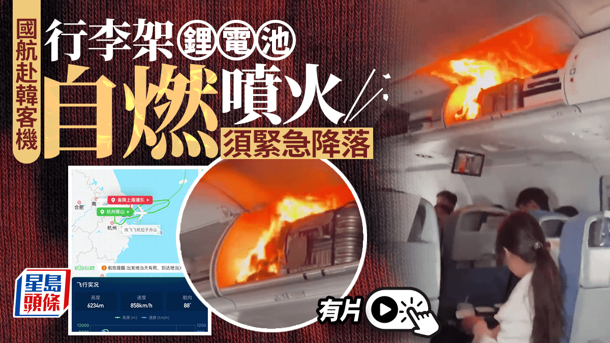 10月18日,有網友發布影片稱,由杭州蕭山國際機場飛往南韓首爾仁川國際機場的國航CA139航班客艙內行李架起火。