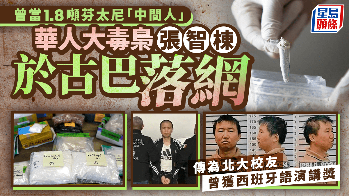 遭全球通緝的華人大毒梟張智棟(音譯)近日在古巴被捕,本月23日由墨西哥當局引渡至美國。他被指控為跨國販毒集團核心頭目,負責將芬太尼從中國運往南美洲、歐洲和美國,是至少1.8噸芬太尼販運的國際中間人,年獲利約1.5億美元,去年曾在墨西哥被捕,但最終挖掘50米地洞成功越獄逃脫。網傳他本科畢業於北京大學西班牙語專業,西語十分流利。