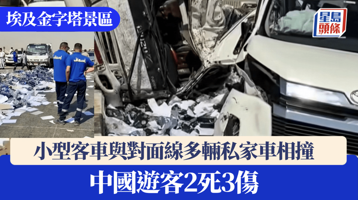 埃及金字塔旅遊大道小巴撞私家車,2名中國遊客遇難,另有3名中國遊客受傷。新華社