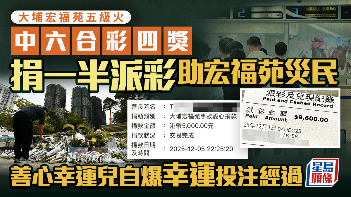 大埔宏福苑五級火︱中六合彩四獎 捐一半派彩助宏福苑災民 善心幸運兒自爆投注經過|Juicy叮