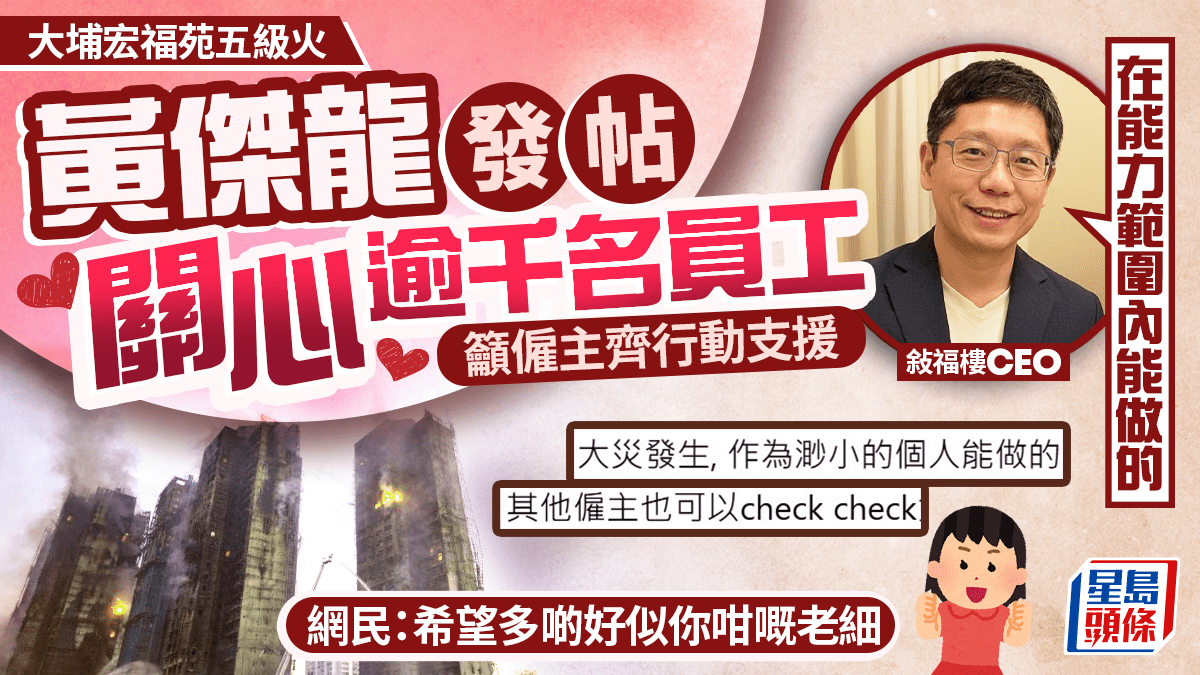 大埔宏福苑五級火|敍福樓CEO黃傑龍發帖關心逾千名員工 獲網民讚「好老闆」:好人一世好福報