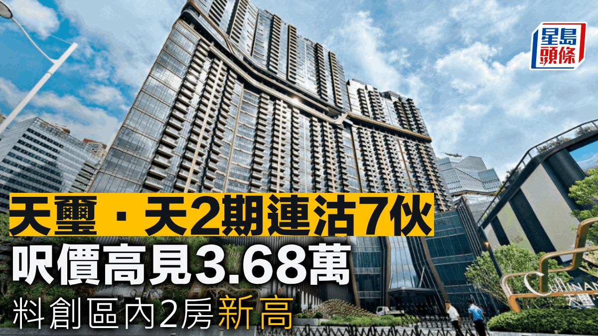 天璽·天2期連沽7伙 呎價高見3.68萬 料創區內2房新高