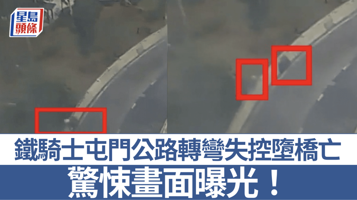 天眼直擊|驚悚畫面曝光!鐵騎士屯門公路掟彎失控 飛出欄邊墮橋亡 電單車續溜前數十米