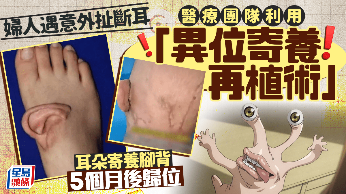 婦意外被扯斷耳 寄養腳背5個月後歸位