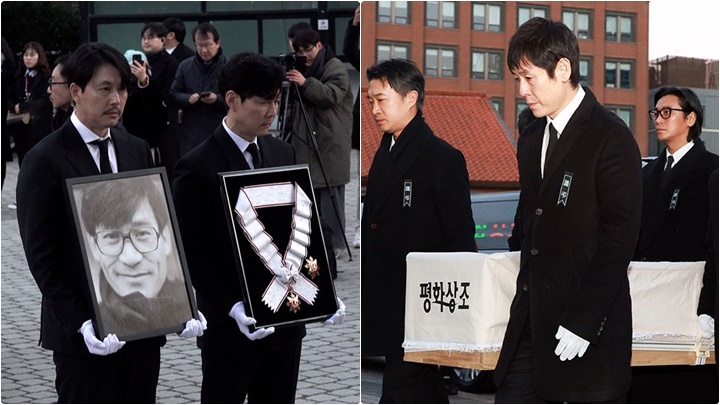 安聖基舉行告別式 鄭雨盛強忍淚水致詞:他的溫和影響所有人 朱智勳、趙祐鎮扶靈