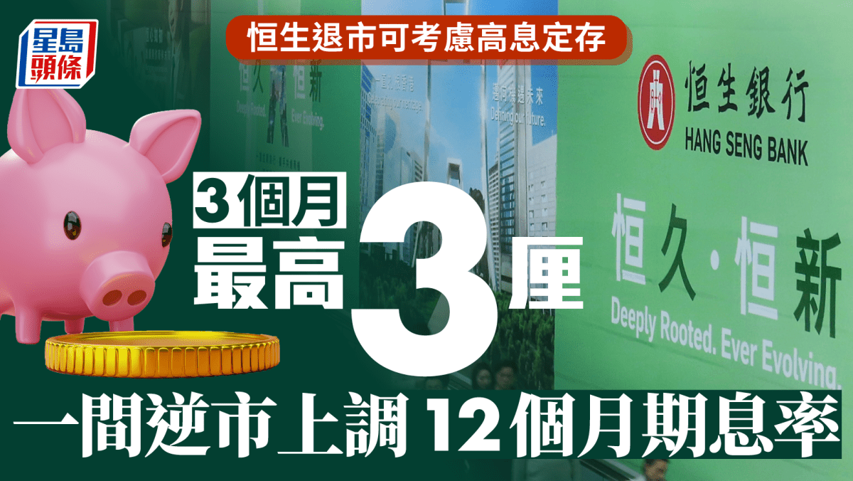 定存攻略|恒生退市可考慮高息定存 3個月最高3厘 一間逆市上調12個月期息率