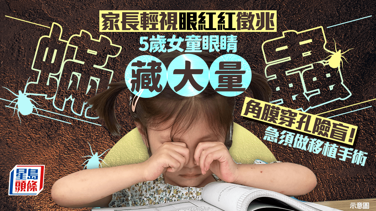 家長輕視眼紅紅徵兆!5歲女童眼睛藏大量蟎蟲角膜穿孔險盲 急須做移植手術