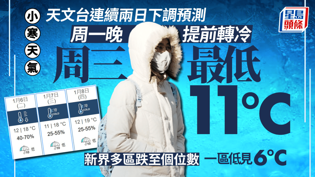 小寒天氣︱天文台:今晚天氣轉冷 未來三日持續寒冷 明早最低12°C、周三最低11°C