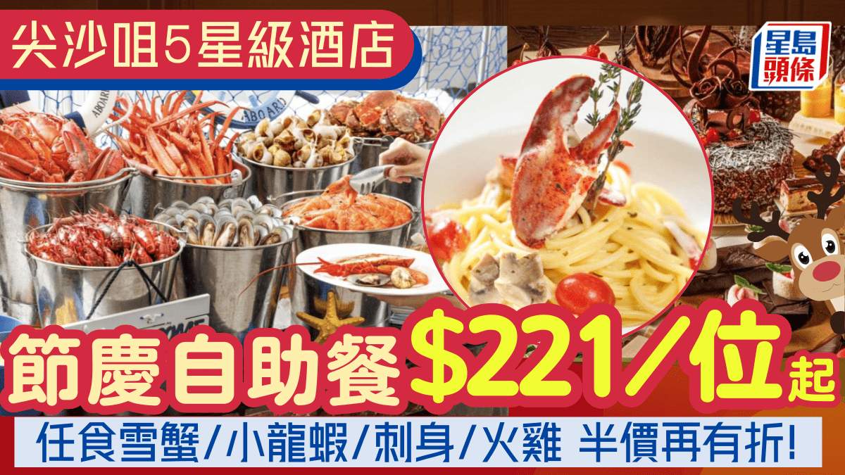 尖沙咀五星級酒店節慶自助餐5折!$221起任食雪蟹/小龍蝦/刺身/火雞