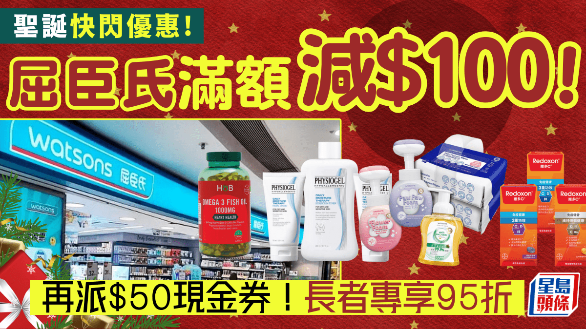屈臣氏聖誕優惠!滿額減$100兼派$50現金券 樂悠咭即享95折