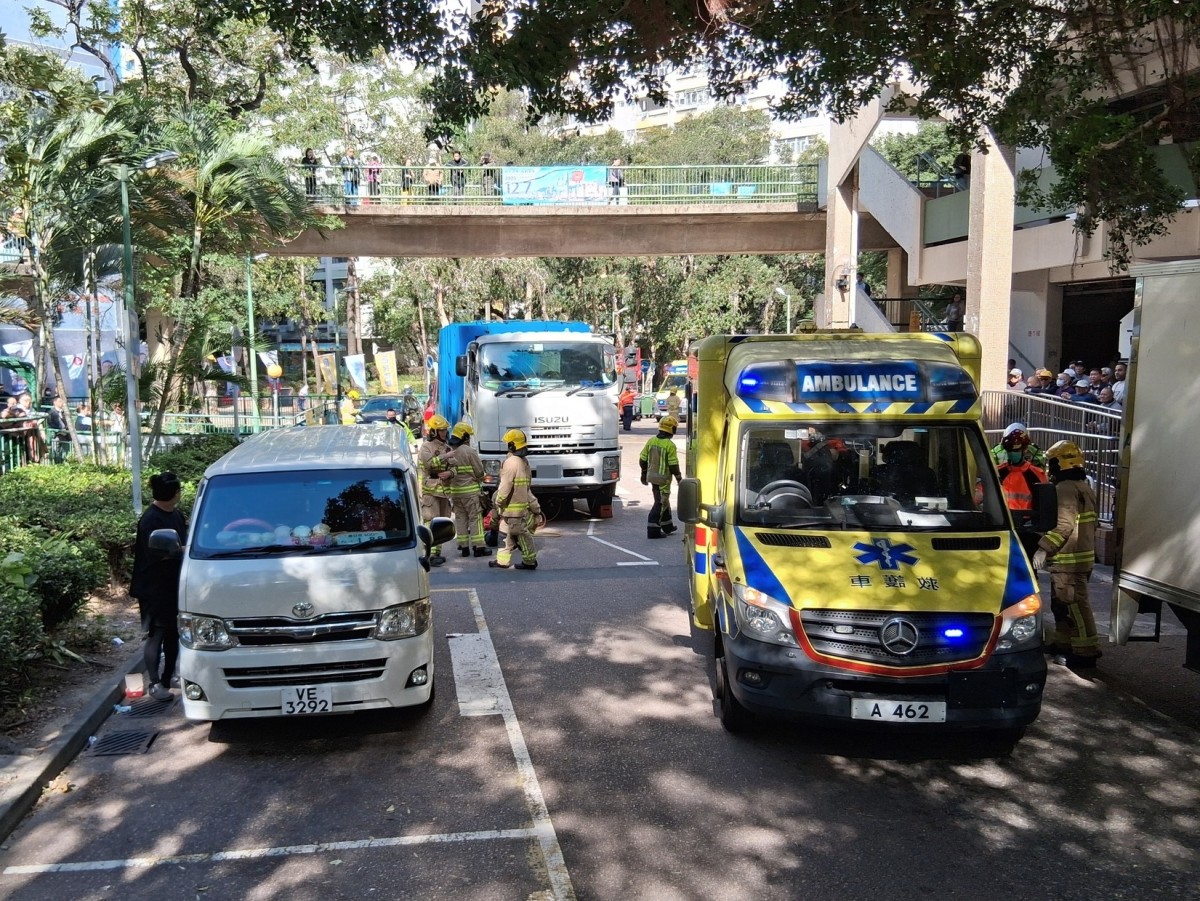 屯門過路婦遭垃圾車撞倒 捲車底獲救送院
